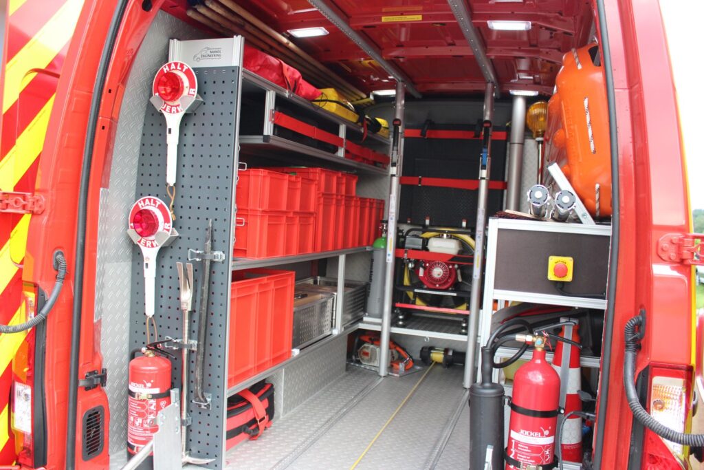 Vom Funk über die Sondersignalanlage, Rückfahrkamera und Umfeldbeleuchtung, bis hin zur komplexen maßgeschneiderten Innenausstattung.